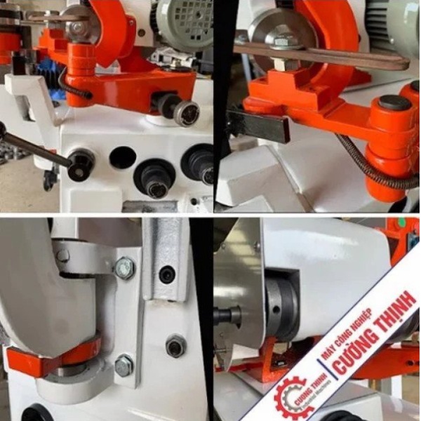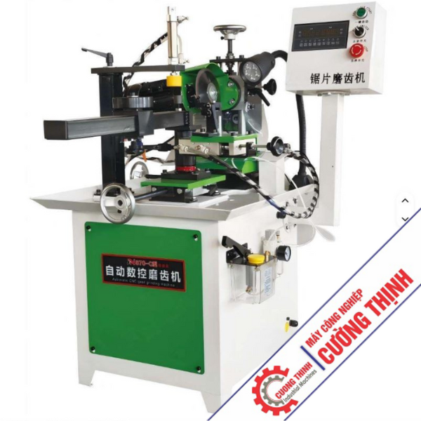 Máy có thanh đẩy tự động thay đổi răng cần mài. Đồng thời có thể thay đổi góc mài phù hợp với góc của lưỡi cưa. Người dùng chỉ cần cài đặt các thông số trên máy và chỉnh góc của đá mài. Máy sẽ tự động mài và dừng khi kết thúc chu trình. Với đơn vị chuyên gia công gỗ, sản xuất cửa nhôm, xưởng ván MDF hay xưởng thép hợp kim – việc đầu tư máy mài lưỡi hợp kim tự động hay máy mài lưỡi cưa đĩa tự động sẽ giúp nâng cao hiệu suất rất đáng kể.