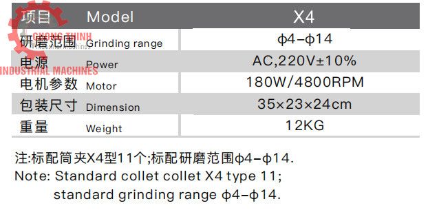- Khả năng mài: Φ4 - Φ14
