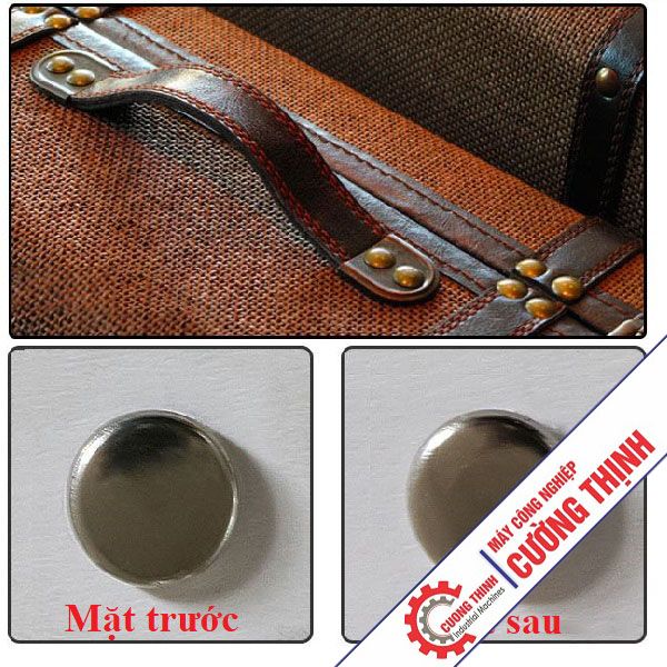 Tự động ép đinh tán kim loại trong nhiều lĩnh vực, bao gồm túi giấy, túi da, hành lý và ngăn đựng thẻ, v.v. Hai khay nguyên liệu và hai hệ thống nạp liệu tự động có thể nâng cao năng suất và giảm chi phí lao động.
