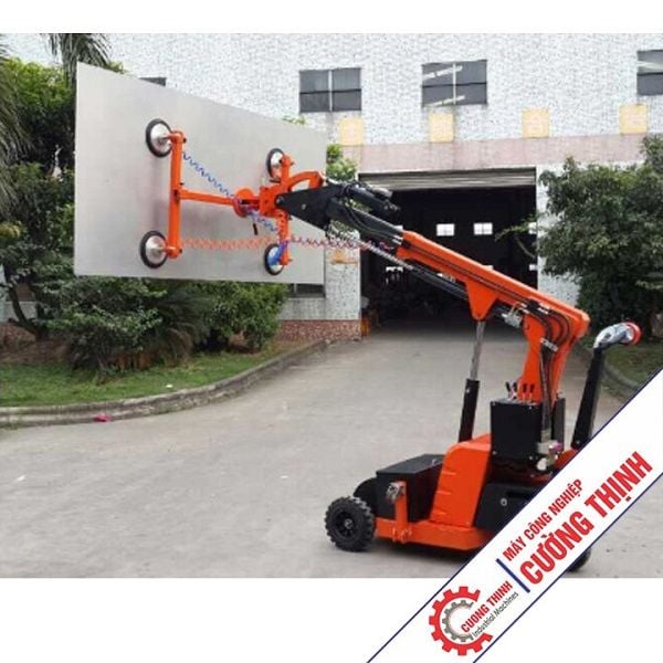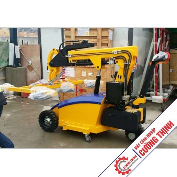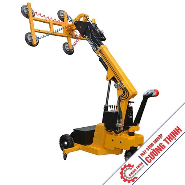 + Máy hít kính, nâng kính được điều khiển bởi hệ thống điều khiển hai chiều, các giác hút sử dụng hệ thống hút chân không giữ chặt tấm kính hay đá, điều khiển xe nâng và xoay hàng hóa đến vị trí đặt.